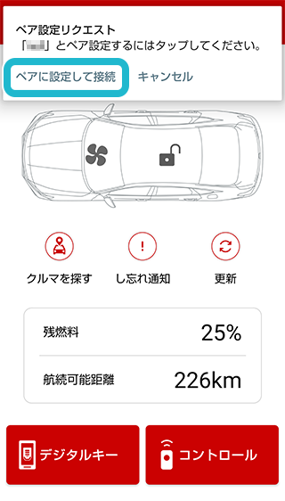 ペア設定リクエストポップアップの「ペアに設定して接続」をタップ。