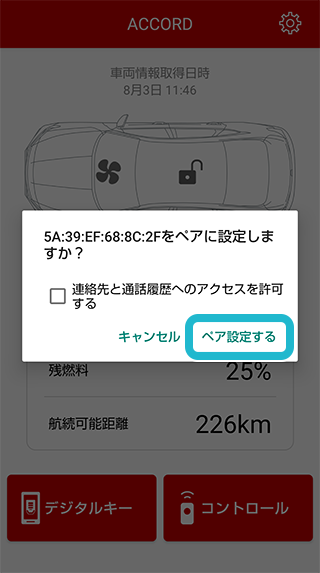 - ※基本パックのみご利用の方でも、ペアリング時に「Honda Digital Key」と表示される場合がございます。