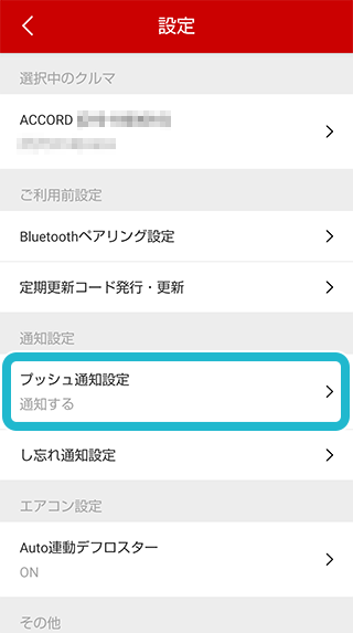 Honda リモート操作をご利用になるには、プッシュ通知をONにしてください