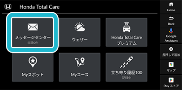 画面の「Home」をタップし、「Honda Total Care」をタップ、さらに「メッセージセンター」をタップ。