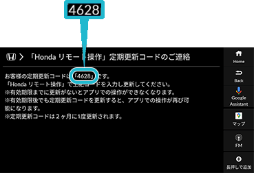 不正利用防止のため、Google 搭載 Honda CONNECTディスプレーに表示される定期更新コードをHonda リモート操作アプリに登録する必要があります。