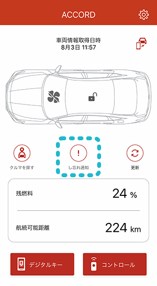 車両のロック忘れやライト消し忘れなどをお知らせする機能です。