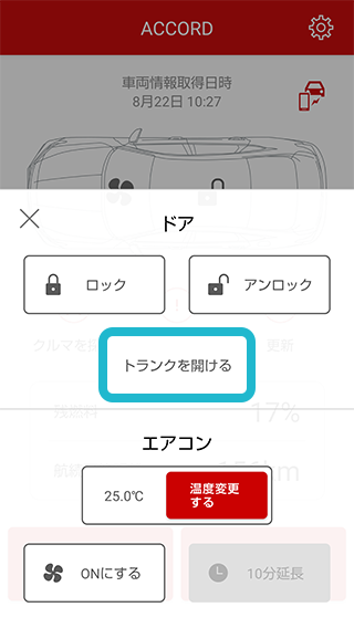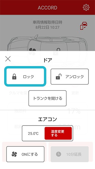- ※アプリでの表示と実際のクルマのステータスがリアルタイムでは異なる場合がございます。