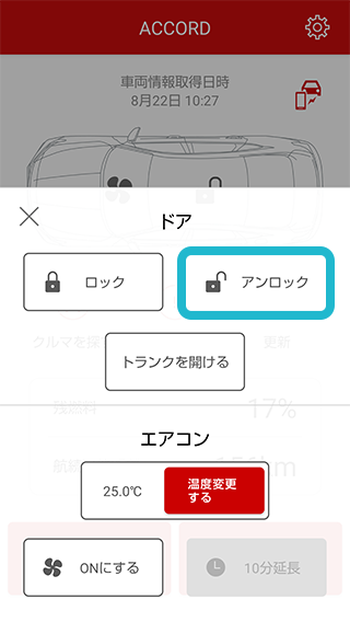 Honda リモート操作アプリを使って、遠隔からクルマの機能の一部を操作することができます。