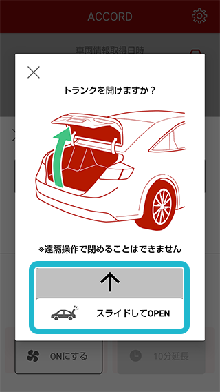 ※トランクオープン操作時は周囲の安全と上方や後方に十分なスペースがあることを確認し、頭をぶつけたり、手などをはさまないように注意してください。