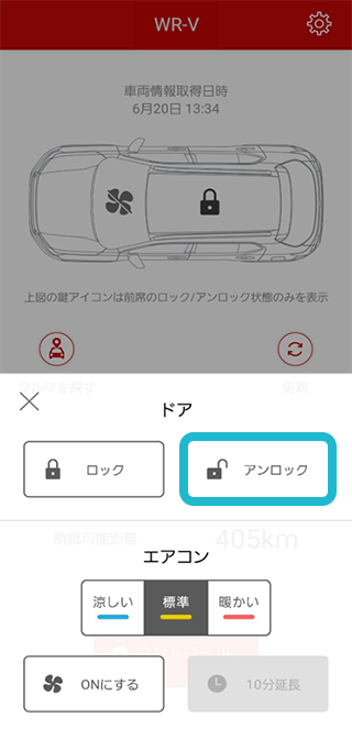 - ※1度のドライブで10分×2回(最大20分/延長操作も含む)エアコン操作が可能です。