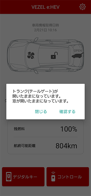 ドアロック、テールゲート、窓の閉め忘れの場合は、スマートフォンから遠隔で操作することができます。