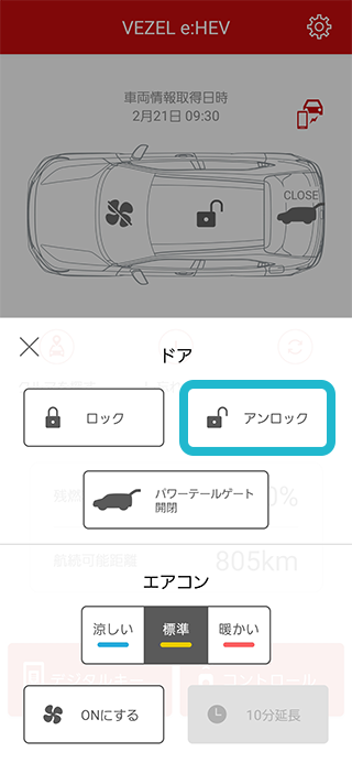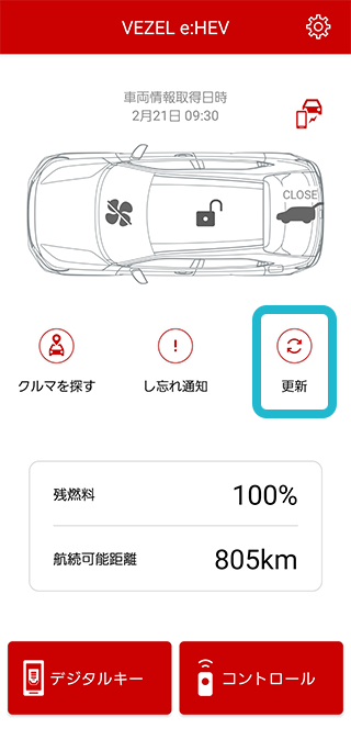 - ※クルマの状態とアプリの表示にアンマッチがある場合、TOP画面の更新ボタンをタップしてください。