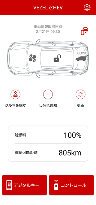 - ※アプリでの表示と実際のクルマのステータスがリアルタイムでは異なる場合がございます。