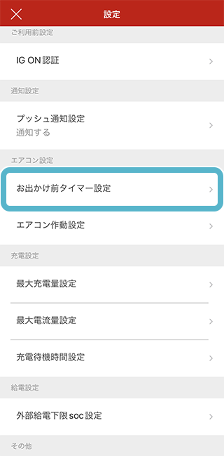 設定画面から「お出かけ前タイマー設定」をタップ。