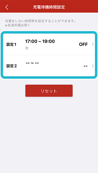 充電をしない時間を設定することができます。