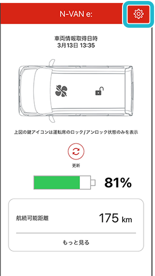 - ※クルマの状態とアプリの表示にアンマッチがある場合、TOP画面の更新ボタンをタップしてください。