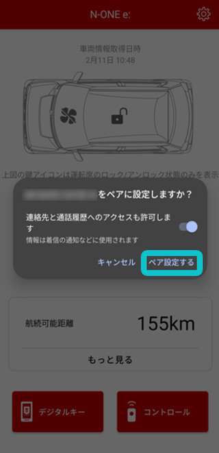 車両ペアリング成功