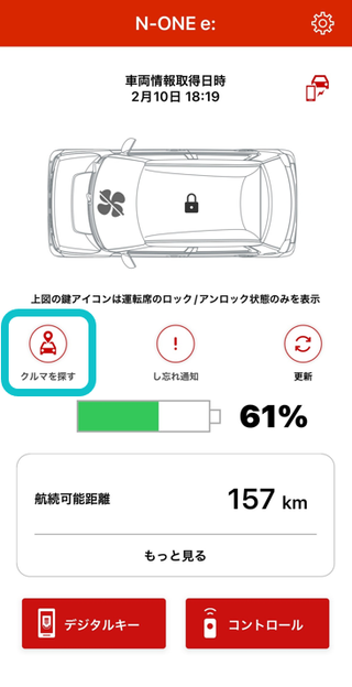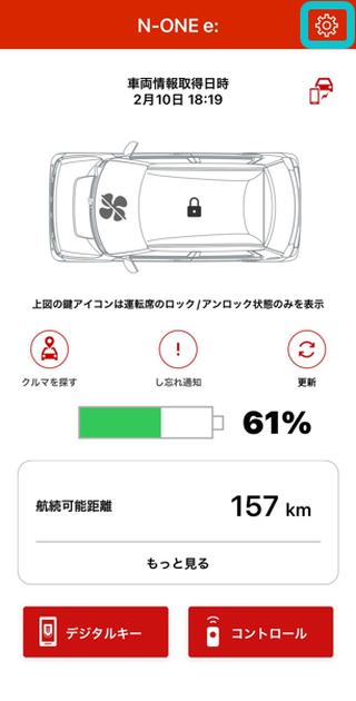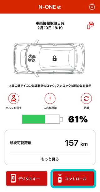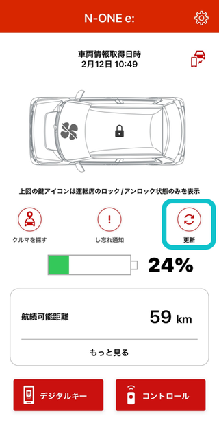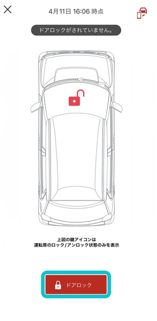 - ※クルマの状態とアプリの表示にアンマッチがある場合、TOP画面の更新ボタンをタップしてください。