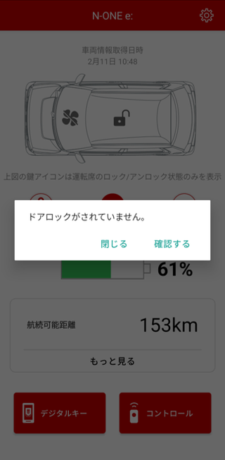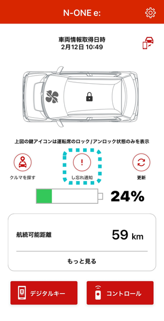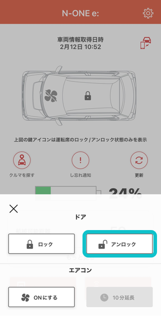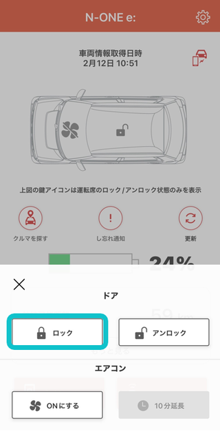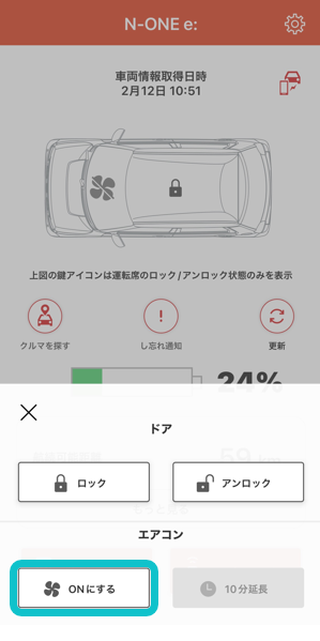 ※Honda リモート操作でのエアコン稼働中は、し忘れ画面でのドアロック操作ができません。 ※車内にHonda スマートキーがあると操作できません。