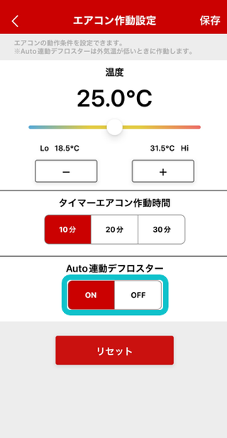 Auto連動デフロスターの「ON/OFF」を切替え。
