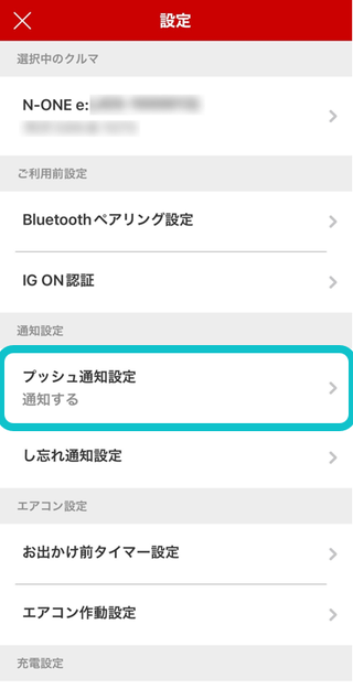 リモート充電・給電サポートをご利用になるには、プッシュ通知をONにしてください