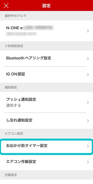 設定画面から「お出かけ前タイマー設定」をタップ。