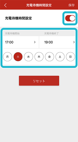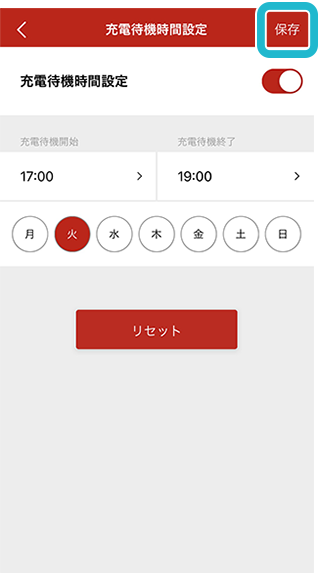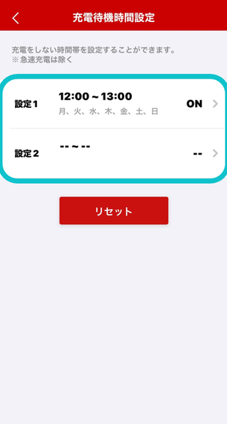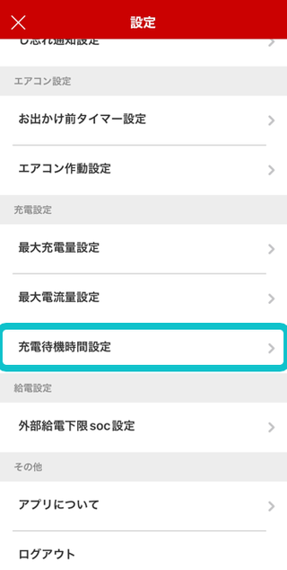 時間帯で電気代が変わるプランをご契約されている場合などにお使いいただけます。設定画面で『充電待機時間設定』をタップ。