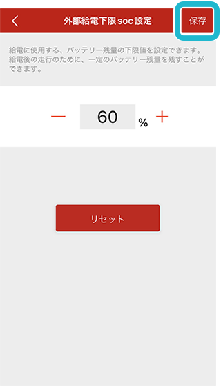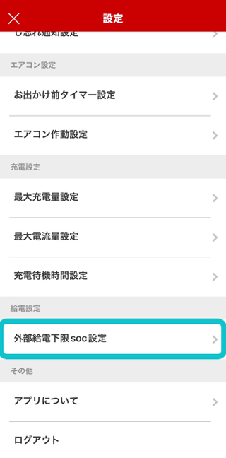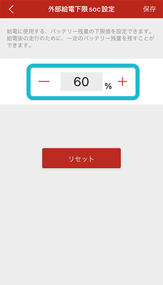 外部給電を想定以上に使用しないよう設定することで、車両の電欠を防ぎます。