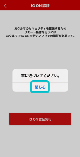 不正利用防止のため、 車両を起動してリモートアプリで認証する必要があります。
