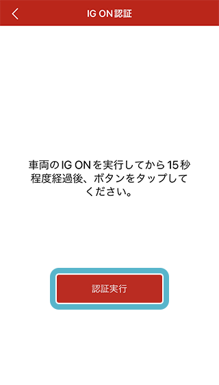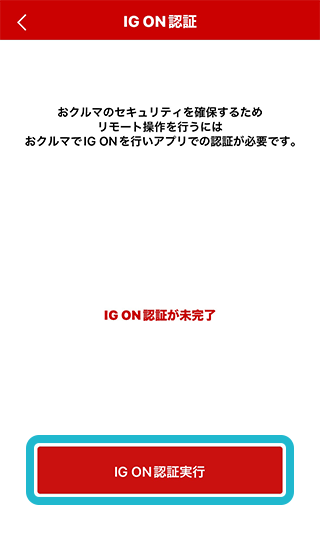 IG ON認証画面で「IG ON認証実行」をタップ。