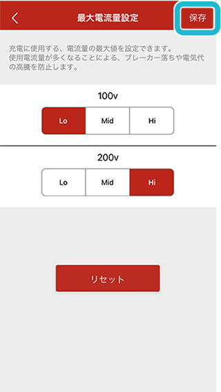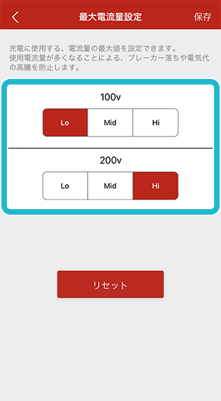 充電の際に、電気契約に合わせた電流量に設定することができます。
