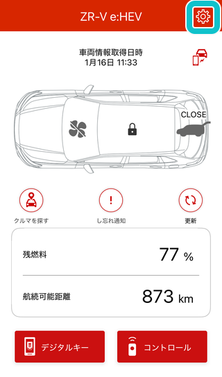 Honda リモート操作をご利用になるには、プッシュ通知をONにしてください