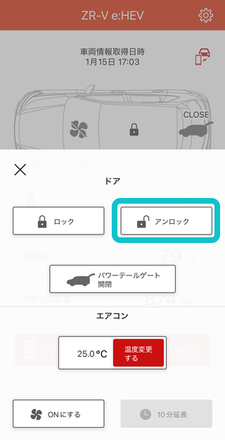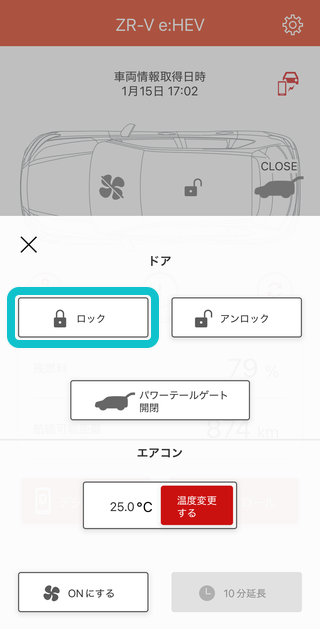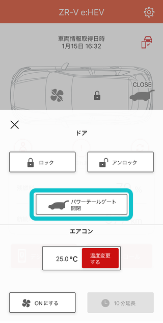 ドアロック、テールゲート、窓の閉め忘れの場合は、スマートフォンから遠隔で操作することができます。