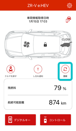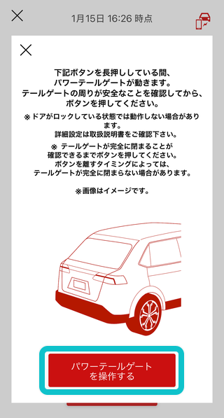 - ※クルマの状態とアプリの表示にアンマッチがある場合、TOP画面の更新ボタンをタップしてください。