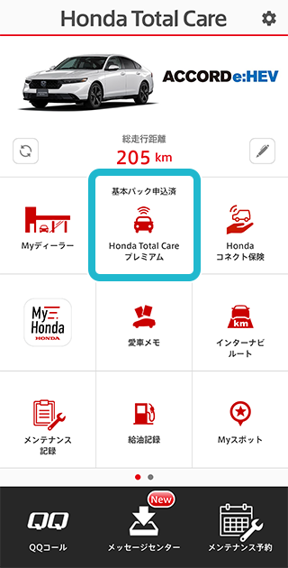 アプリログイン後、「Honda Total Careプレミアム」をタップ。