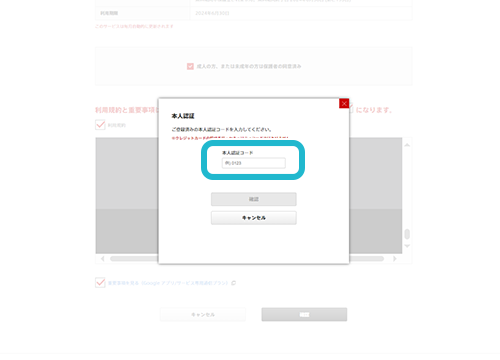 本人認証コードを入力。