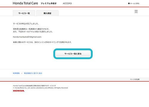 サービス申込完了画面が表示されます。