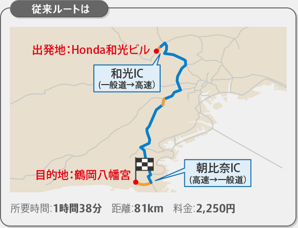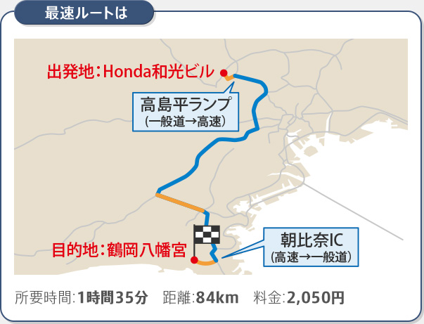 Honda和光ビル → 鶴岡八幡宮 [最速ルートを選択]
