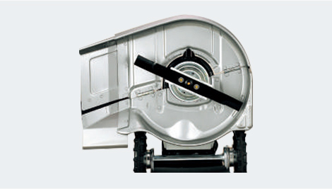 切れ味鋭いカッターブレード、スチール製ハウジングを装備。また、ハウジングは草丈の状態にあわせ、自在に開閉します。さらに、刈草の飛散を防ぐスチール放出ガードを採用。