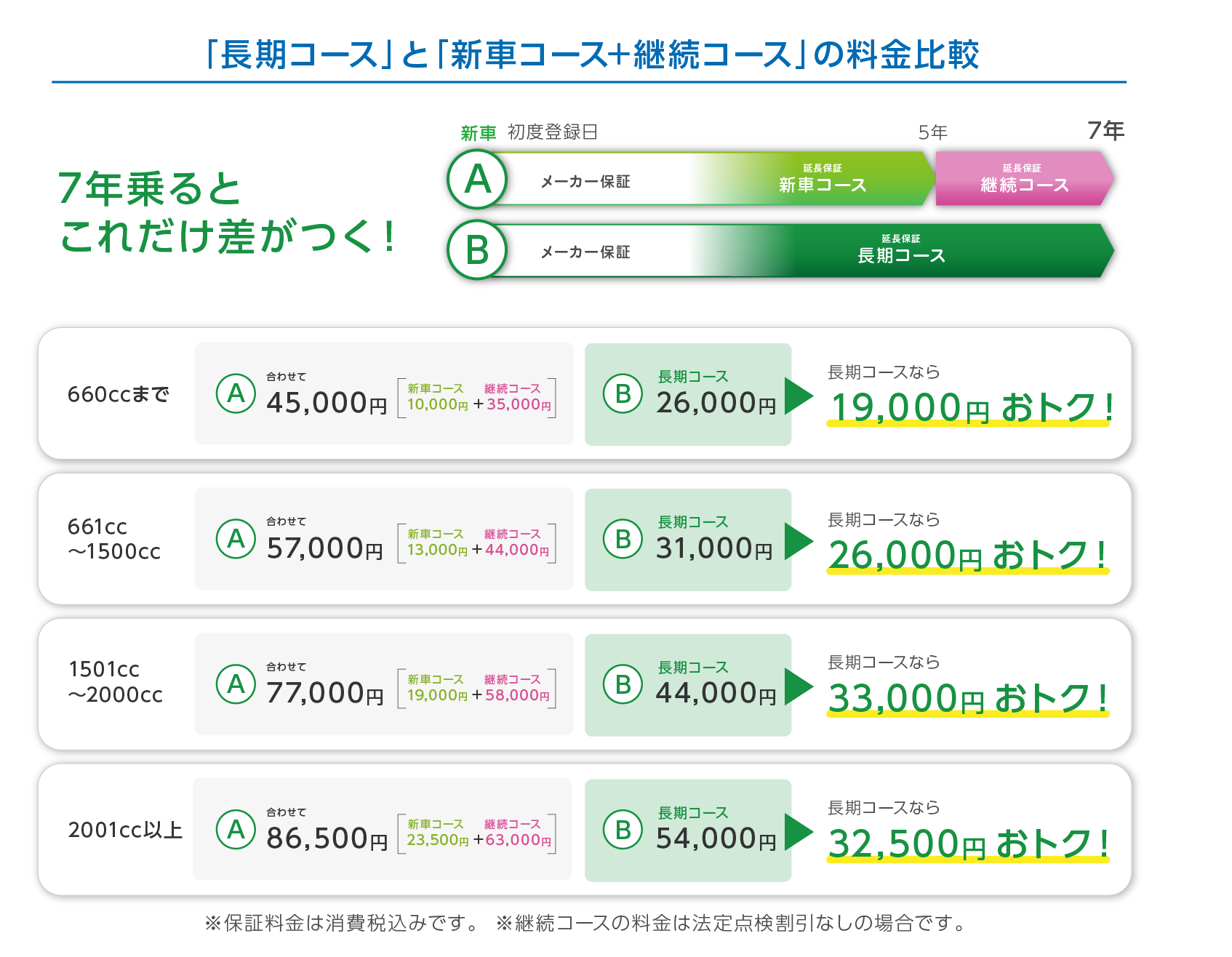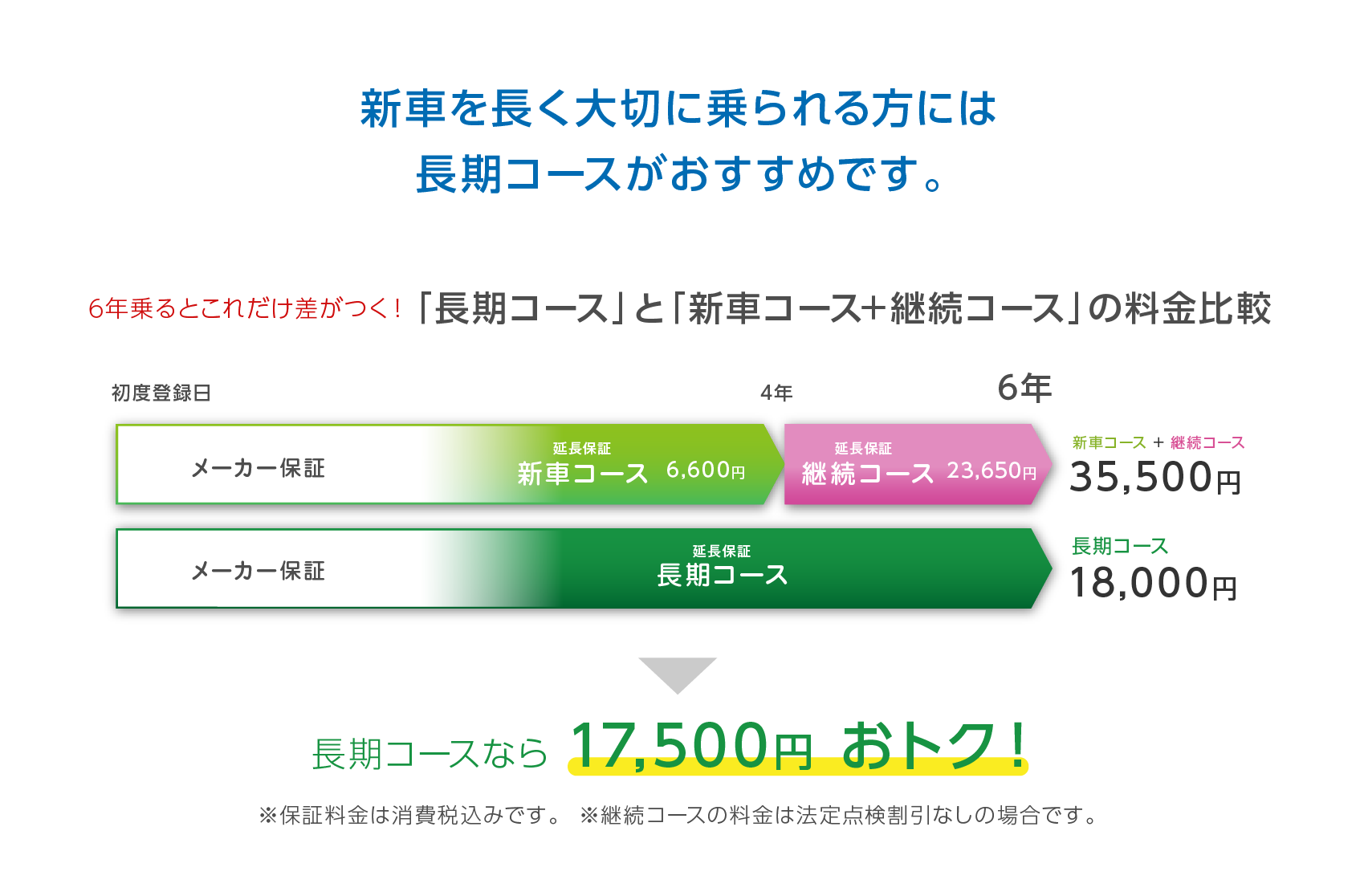 乗用車の「長期コース」「新車コース」は新車購入時(初度登録日から6ヵ月後の前日まで)、