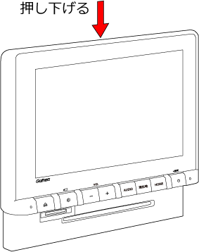 モニターを手で押し下げる前に、SDカードやディスクなどのメディアが取り出し状態で残っていないことをご確認ください。