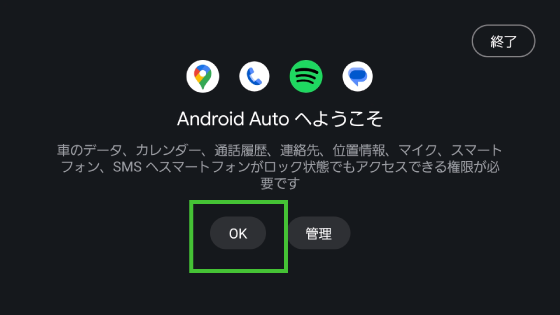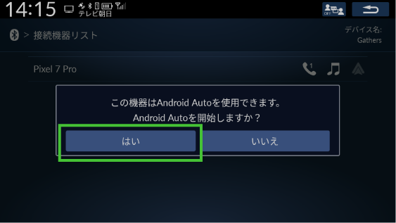 Hondaアイコンにタッチ(またはUSBケーブルを抜く)