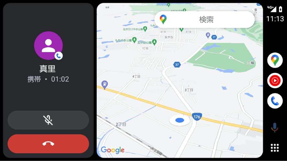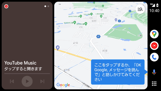 Android Auto をご使用いただくと、運転に集中しながら、 Google アシスタントに話しかけて音声で操作ができます。
