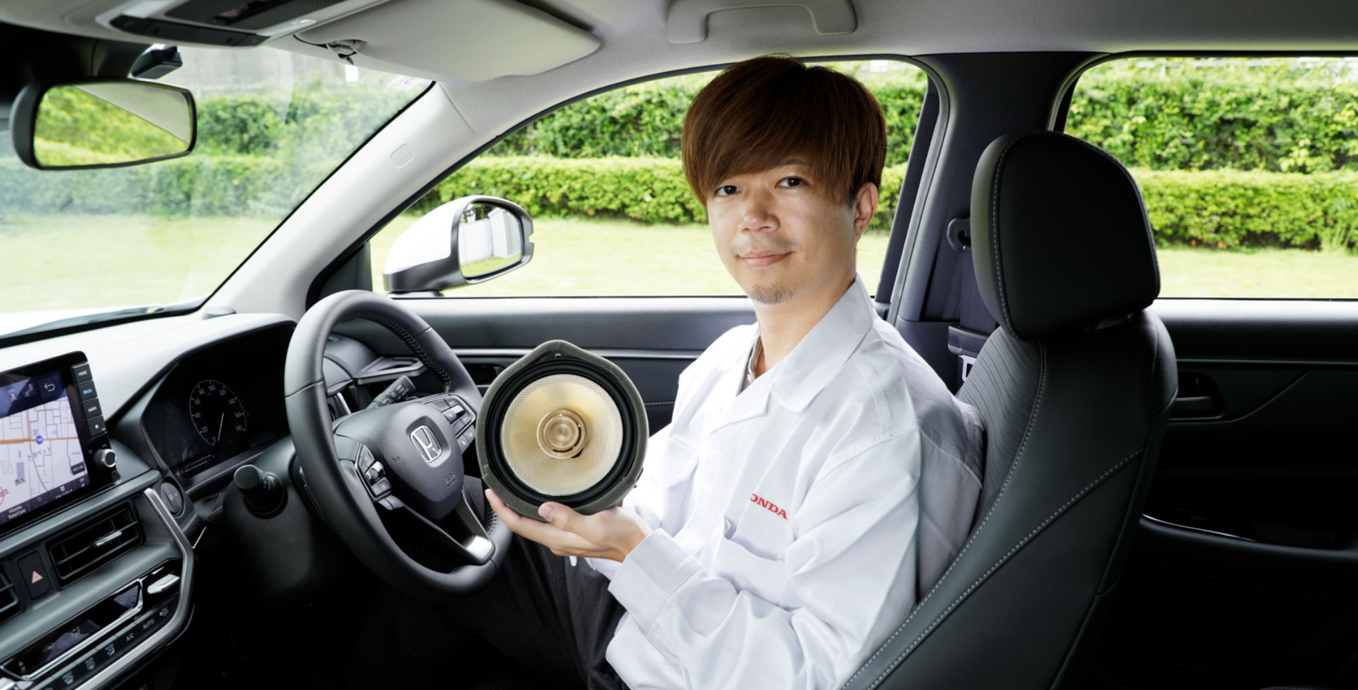 お客様から見えるオンダッシュツィーターのデザインは、Hondaの水平基調のインテリアデザインに合わせてフラットなフォルムにし、車室空間との調和を目指しました。また、リビングで使う音響機器のようなイメージをもとに、落ち着いたマットな質感にしています。そうすることでより多くのユーザー層に受け入れてもらえるデザインを目指しました。
