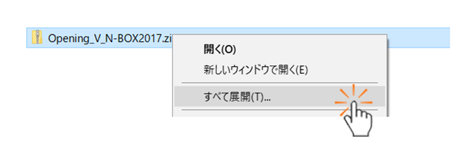 「すべて展開」を選択して解凍します。解凍したフォルダの中に「Gathers」フォルダと「GathersOP」フォルダが作成されます。