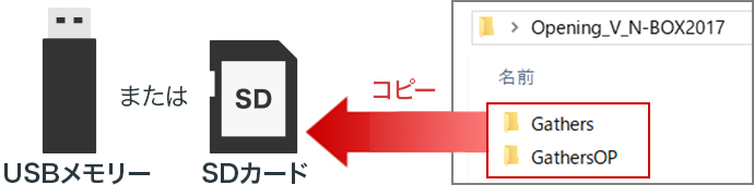 6.作成された「Gathers」フォルダおよび「GathersOP」フォルダをUSBメモリーまたはSDカードにコピーしてください。