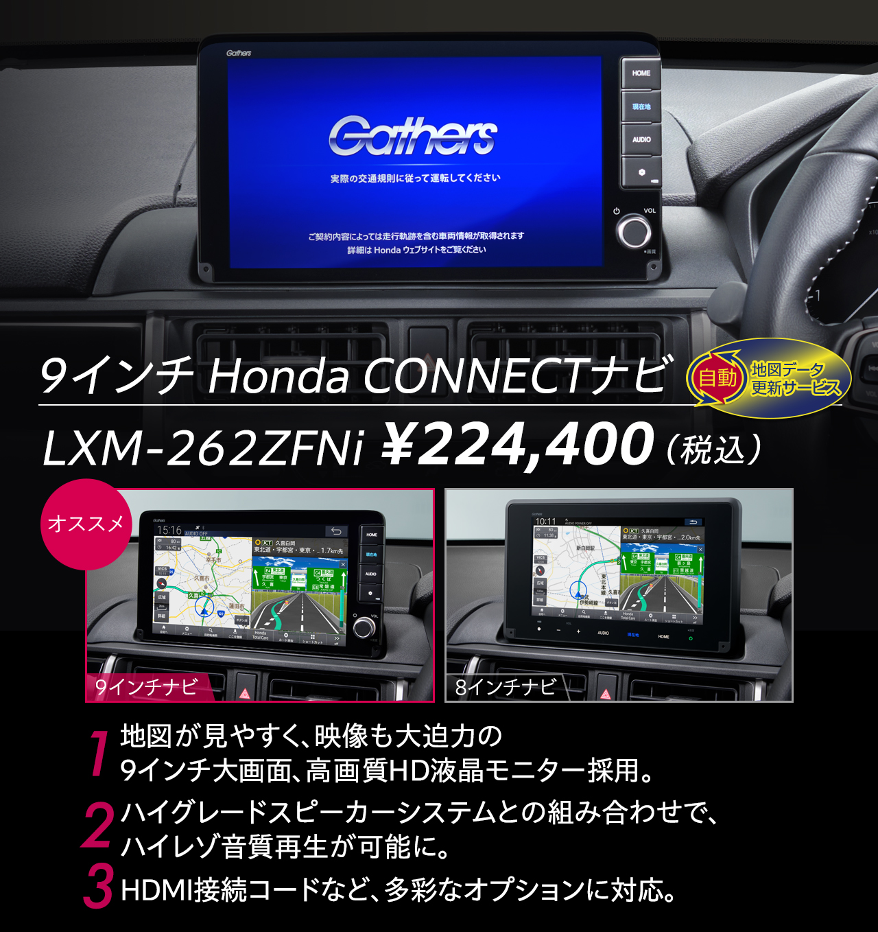 ※ギャザズナビゲーション・オーディオ以外を装着した場合、動作の保証は致しかねます。
