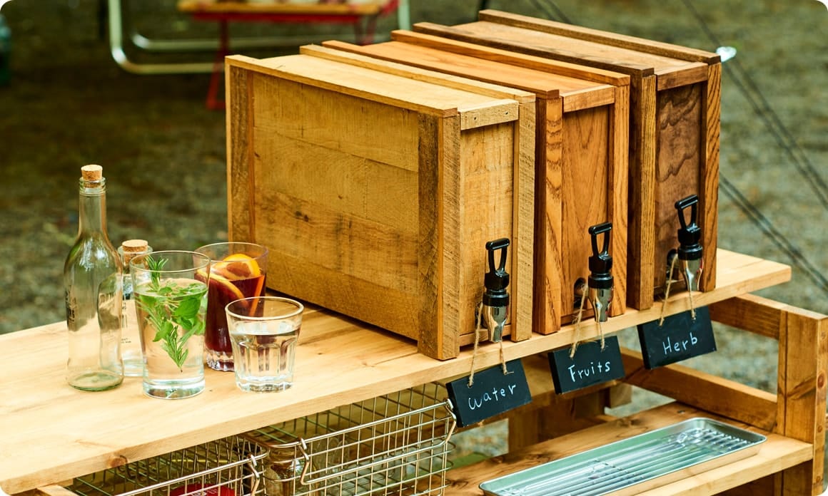 ウォータージャグをおしゃれでスタイリッシュなアイテムに変身させる、木製ウォータージャグカバーの作り方をご紹介。木の質感はキャンプサイトにピッタリ!DIY初心者でも手軽にチャレンジできるので、ぜひ作ってみてください。