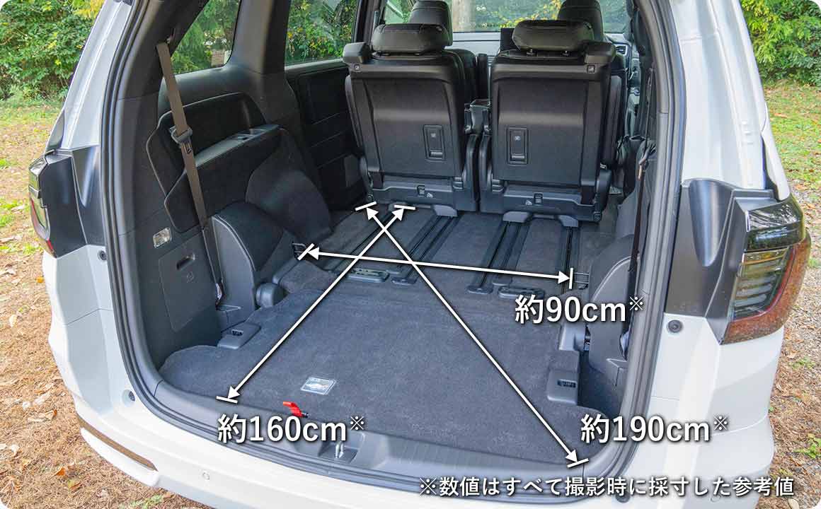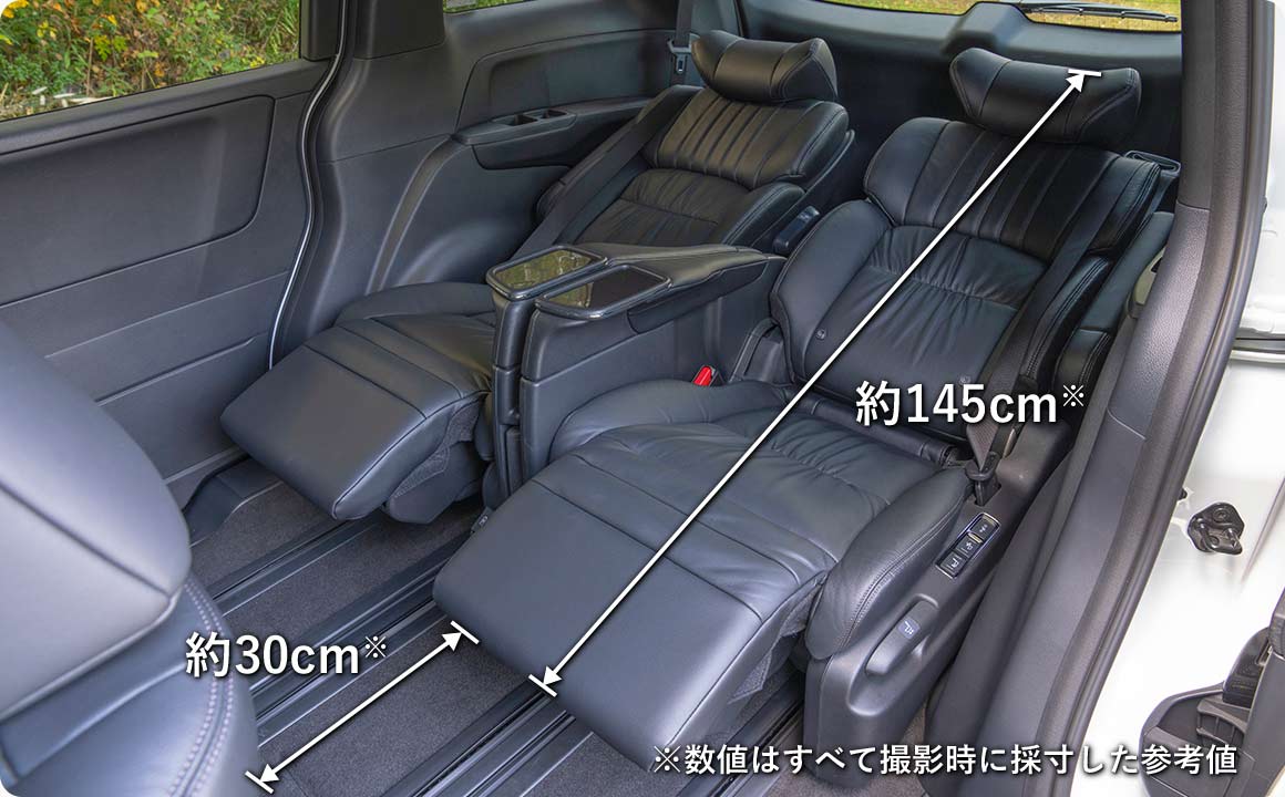 オデッセイは、床下にしまえる3列目シートと前後にスライドする2列目シートにより、さまざまなシートアレンジで車中泊を楽しめる。中でも最も広くベッドスペースを確保できるのが、運転席・助手席(1列目)と2列目シートを組み合わせたアレンジだ。