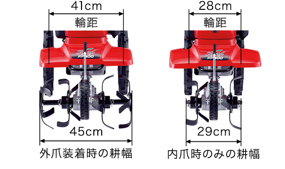 | 耕幅(mm) | 450/290〈内爪時〉 | 450/290〈内爪時〉 | 450/290〈内爪時〉 | |
