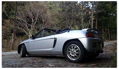 我が家に来て1年の平成4年のシルバー。6万5千キロ。エンジン、絶好調!回せば回すだけ、ドラマチックな「ケモノ」に変貌していく。流して走れば、「イエネコ」のごとく、かっ飛ばせば、「ヒョウ」のごとく、変幻自在。誰だ?「ビートは重くて遅い」なんて言ってるのは?各ギアで活発に回してやれば、とても速い(ホントですって)!冷たい空気を切り裂いてオープンで突っ走る。これ以上の快感、ちょっとない。