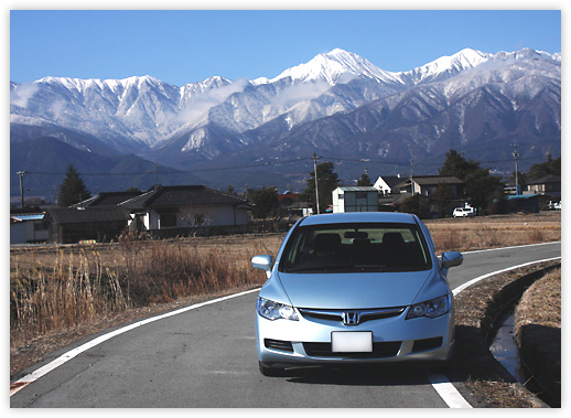 雪山と冬の冷たい空気を背景に、きりりと写ったシビックハイブリッド。雲一つない空の色とクルマのボディカラーもマッチして、とてもいい感じです。2枚目の写真も、冬山を水面に反射させて撮影した技ありの一枚でした。 そんな冬の晴れた日の一瞬を逃さず、クリーンなイメージのワンショットを撮った鯉じーじさんに2009年の「ベストショット賞」第2号をお贈りします。おめでとうございます!! これからも運転をエンジョイされて、さらなる「愛車自慢」をお願いします。そして次回はどんな風景でのお写真となるのか?鯉じーじさんからのご投稿を今から楽しみに、事務局スタッフ一同、心よりお待ちしております!
