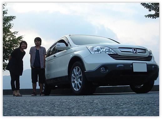 神秘的な雰囲気の漂う本栖湖を背景に、右手に愛する彼女(※誠に勝手ながらそう解釈させて頂きます)、そして左手にはダイナミックに映った愛車CR-V。ん〜、まさに「両手に花」状態の構図に事務局スタッフはシビれました!