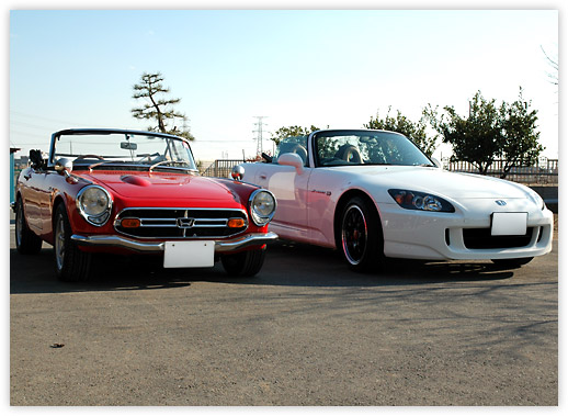 「初めて見る写真の割には、初めてではない気がする...」と思ったら、Bowさんの絵に出てくる2台ではないですか!まさかリアルで撮影してくる方がいらっしゃるとは!!しかも色もそろえて!!! 「まさかの構図」に加え、古いクルマにも新しいクルマにも愛情を注ぎ続けていらっしゃる、キヨッチヤンさんの様子がうかがえ、もう何も言うことはありません。事務局スタッフ全員賛成で、「ベストショット賞」2009年の第1号をお贈りします。おめでとうございます! これからますます希少になってしまうこのオープンカーの2台を、これからも末永く可愛がって下さい。またの投稿、事務局スタッフ一同心よりお待ちしております!
